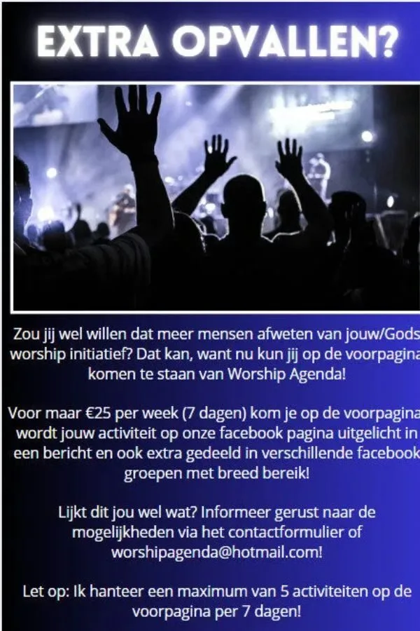 Ontdek het overzicht van conferenties, concerten, worship avonden in de kerk en andere christelijke evenementen door heel Nederland.